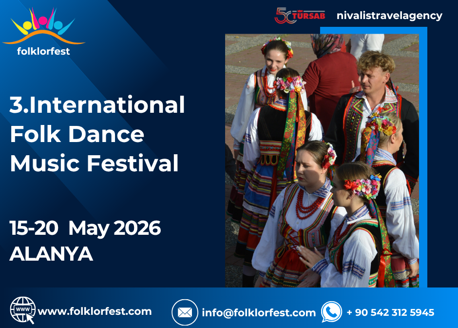 1.Internatıonal “Folk Dance Music Festival” will be arranged between 15 – 20 May 2026 in Alanya – Antalya.